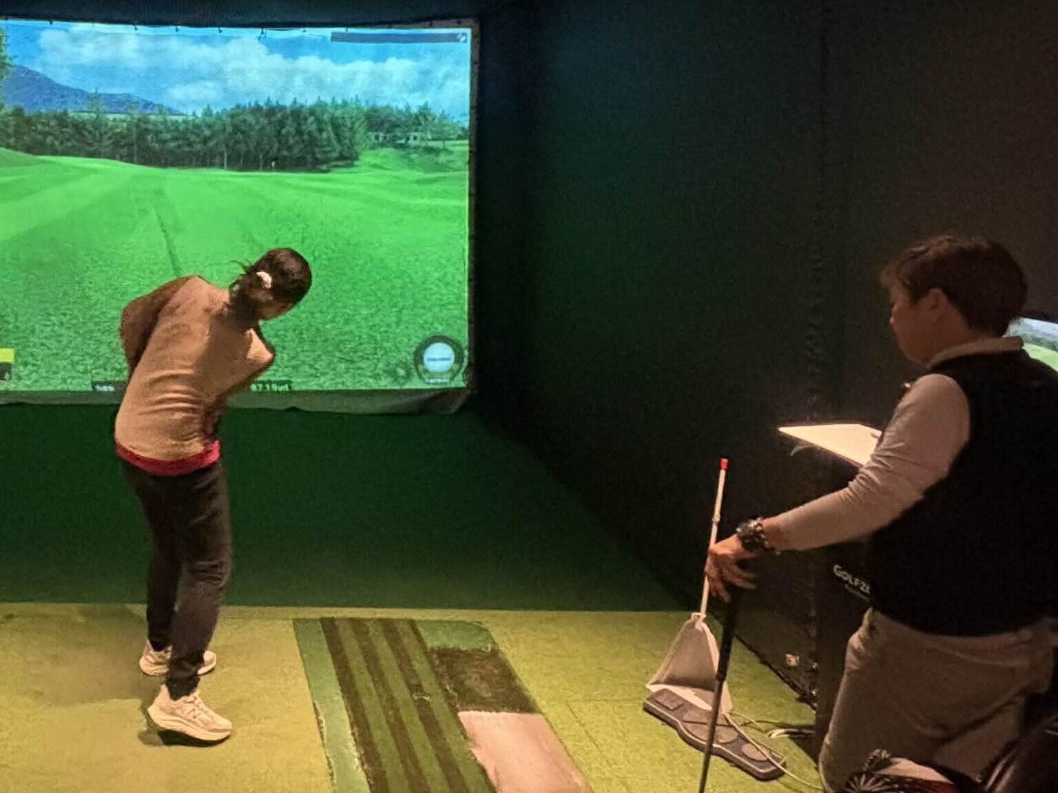 シミュレーションゴルフを使いながら、実際のラウンドと同じように18ホールを回ります